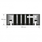 Note: Length shown is overall and includes fixing lugs. Net length is 900mm.
